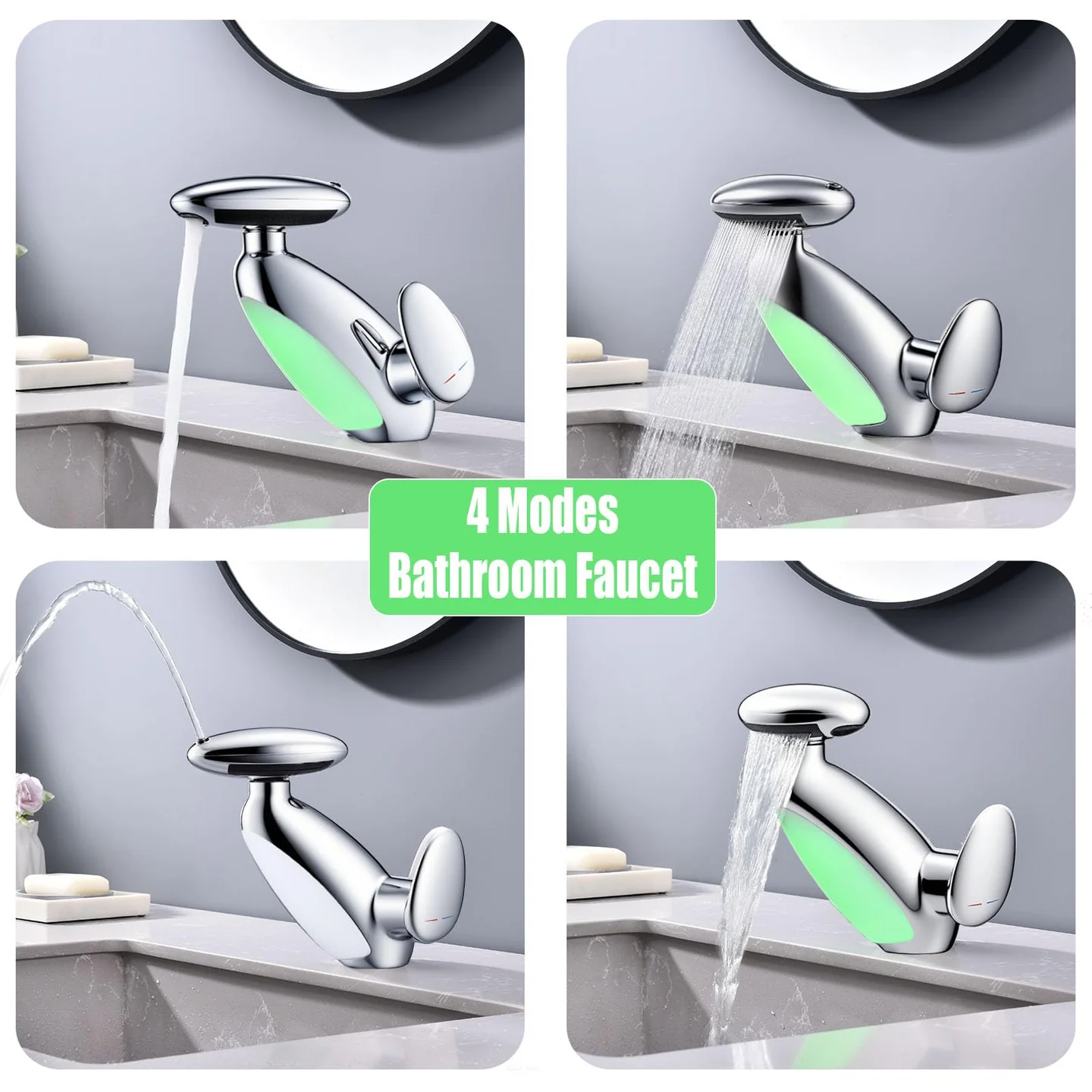Baterie Chiuvetă Baie cu LED Inteligent – 4 Moduri Jet, Cap Retractabil Extensibil 58 cm, Iluminare Automată în 6 Culori, Fără Baterii, Argintiu este soluția modernă pentru baie, combinând funcționalitatea, confortul și un design spectaculos. Iluminarea LED automată adaugă un efect vizual elegant, schimbând culorile în funcție de temperatură sau preferințe, fără a fi nevoie de baterii.