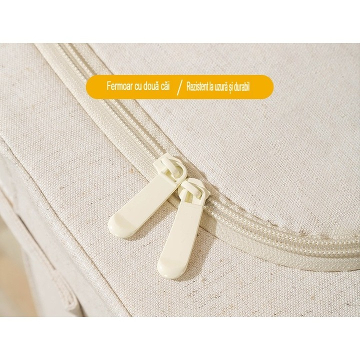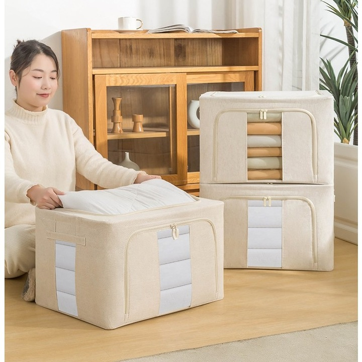 Cutie de Depozitare Pliabilă cu Fereastră și Fermoar Dublu, 66 L, Textil Premium Impermeabil, Cadru Metalic, 50×40×33 cm, Bej este soluția ideală pentru organizarea și protejarea eficientă a obiectelor din casă, combinând durabilitatea, funcționalitatea și un design elegant. Cutia pliabilă permite depozitarea ușoară a hainelor, jucăriilor, lenjeriilor sau altor obiecte, păstrând totul ordonat și accesibil.