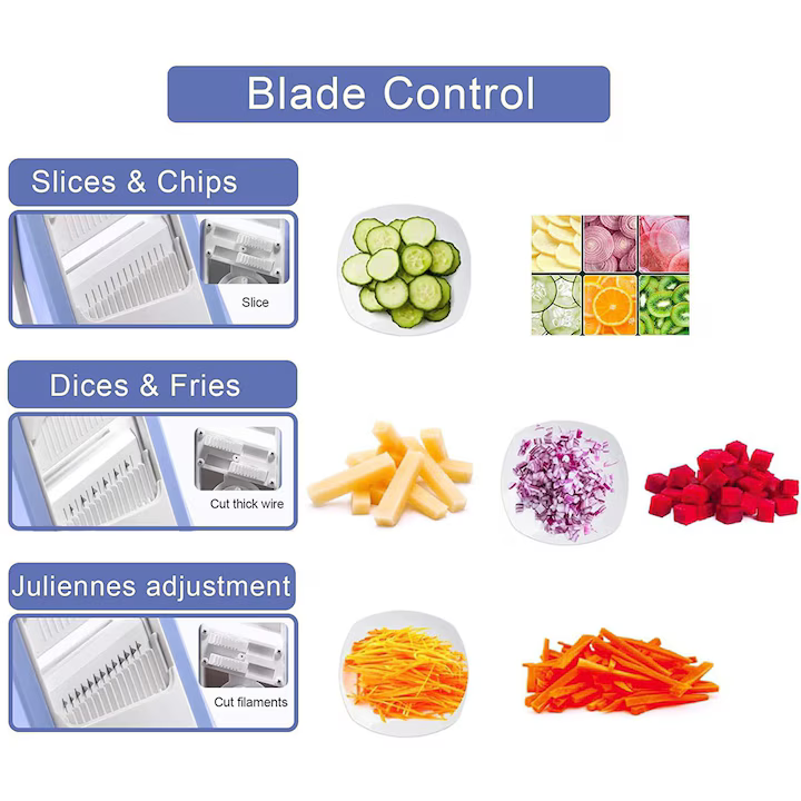 Feliatorul de legume multifuncțional este un produs premium, cu cerere ridicată în categoria Home & Kitchen / HoReCa, apreciat pentru nivelul ridicat de siguranță, versatilitatea excepțională și designul compact. Cu până la 30 de tipuri diferite de tăiere într-un singur dispozitiv, fără schimbarea lamelor, produsul reprezintă o soluție eficientă atât pentru uz casnic intensiv, cât și pentru bucătării profesionale sau revânzare.