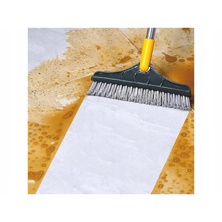 Mătură 2 în 1 cu perie și racletă – Cap detașabil rotativ, Peri polipropilenă rezistenți, Design pliabil este soluția practică pentru curățarea eficientă a diferitelor tipuri de suprafețe. Combinația dintre perie și racletă permite îndepărtarea atât a prafului și murdăriei uscate, cât și a lichidelor sau depunerilor persistente.