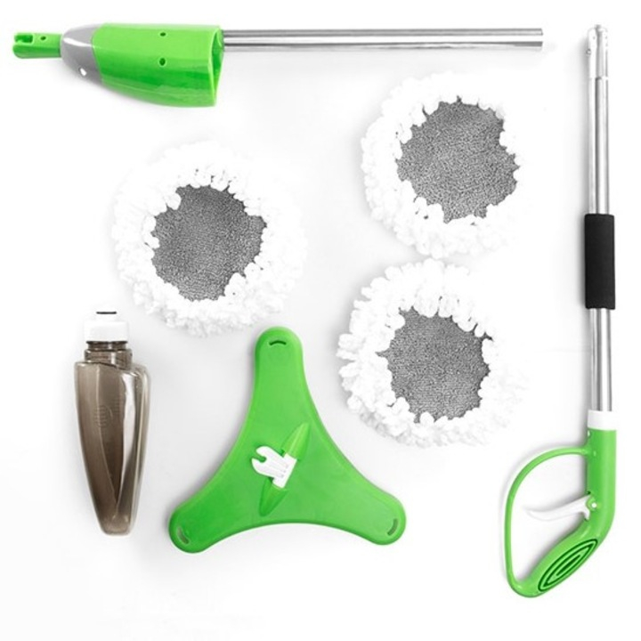 Mop triplu rotativ cu pulverizator – 3 capete rotative, Rezervor 600 ml, ABS/PP/Oțel inoxidabil este soluția modernă pentru curățarea eficientă și rapidă a pardoselilor. Datorită celor 3 capete rotative, mopul acoperă o suprafață mai mare într-un timp mai scurt, facilitând accesul în colțuri și zone greu accesibile.