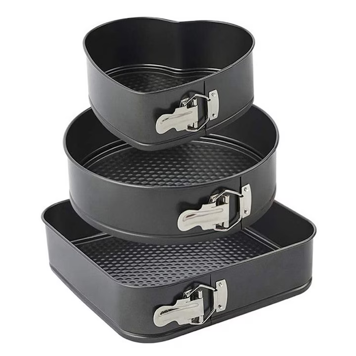 Set Tăvi de Copt Antiaderente cu Pereți Detașabili, 3 Bucăți, Oțel Carbon, Forme Diferite – Negru