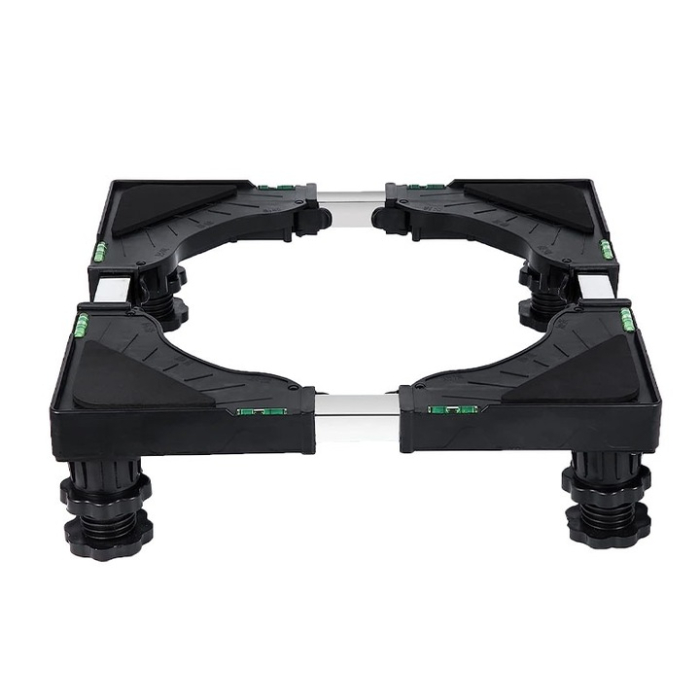 Fabricat din materiale rezistente, suportul poate susține până la 180 kg, asigurând stabilitate și protecție pentru pardoseală. Culorile neutre, precum negru, se integrează ușor în orice decor. Suportul permite reglarea rapidă a înălțimii și poziției aparatului, fiind ideal pentru reamenajări, curățenie sau transport intern al electrocasnicelor.