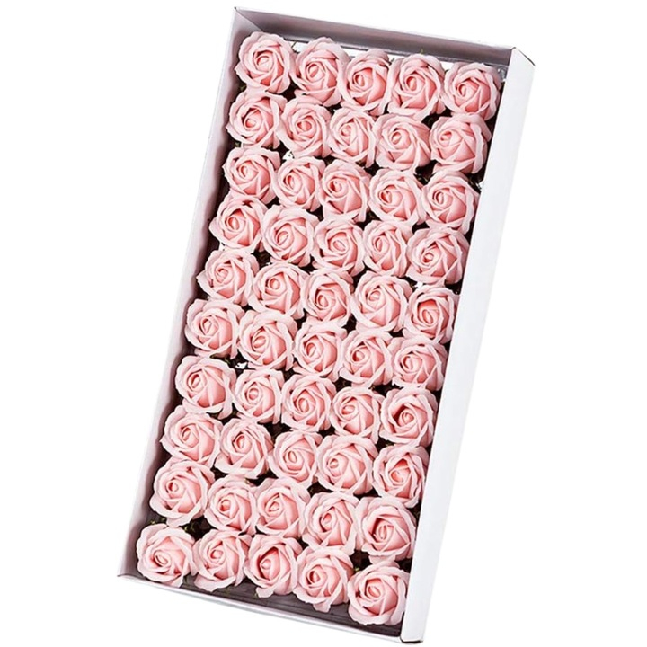 Setul de 50 trandafiri din săpun parfumat este alegerea perfectă pentru cadouri elegante și aranjamente decorative rafinate. Realizați din săpun de înaltă calitate, acești trandafiri au un aspect realist, parfum delicat și își păstrează frumusețea pe termen lung, fiind o alternativă ideală la florile naturale.