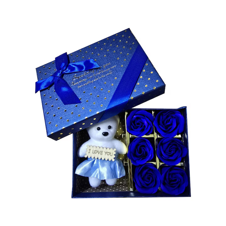 Set Ursuleț de Pluș + 6 Trandafiri Roșii din Săpun Parfumat, Cutie Elegantă engross