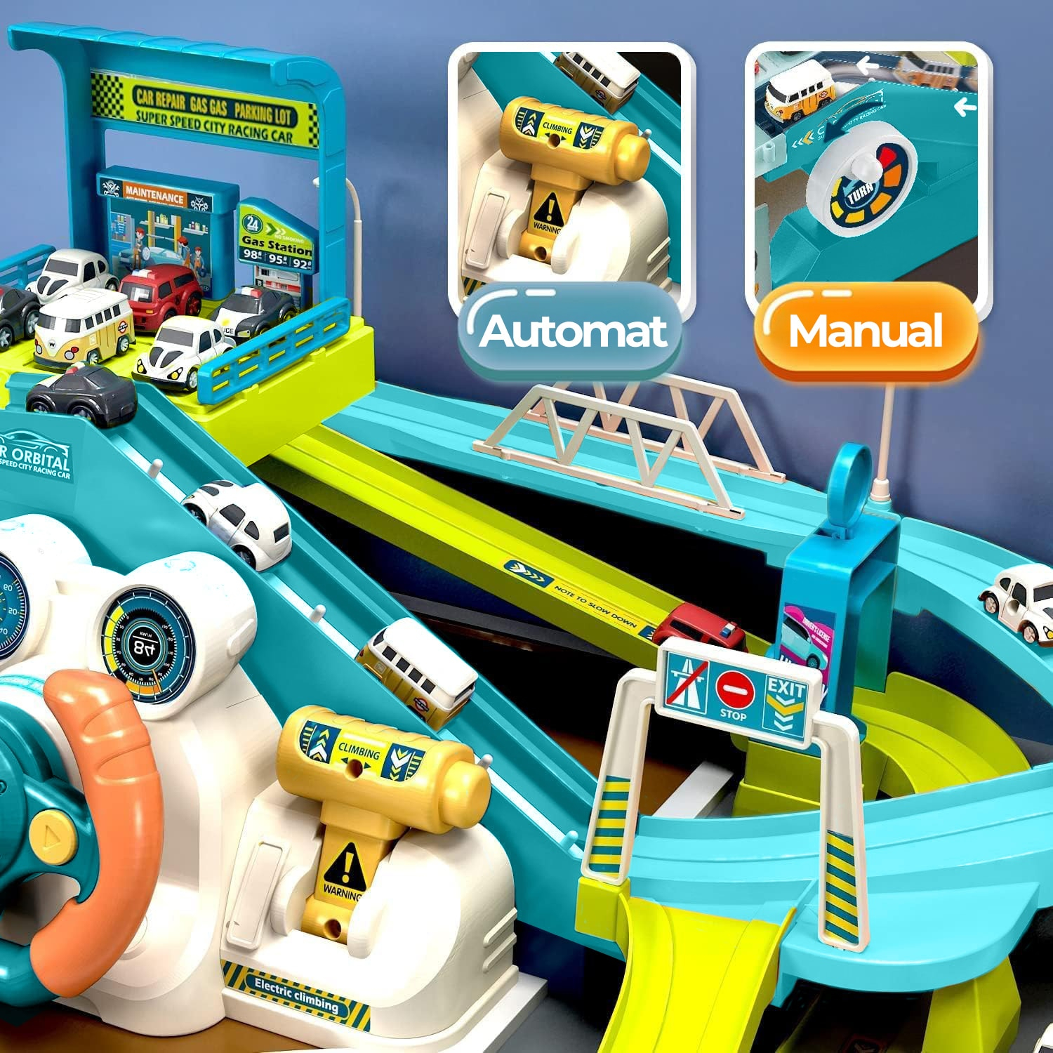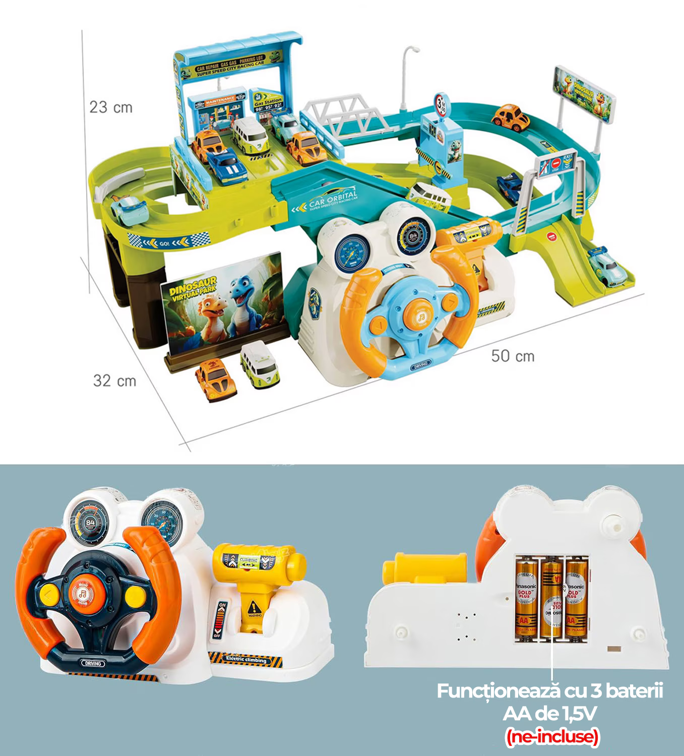 Această jucărie interactivă 2 în 1 îmbină distracția unei parcări cu experiența de conducere oferită de volanul interactiv. Perfectă pentru copii, dezvoltă dexteritatea, coordonarea mână-ochi și creativitatea, fiind totodată o jucărie educativă și captivantă.