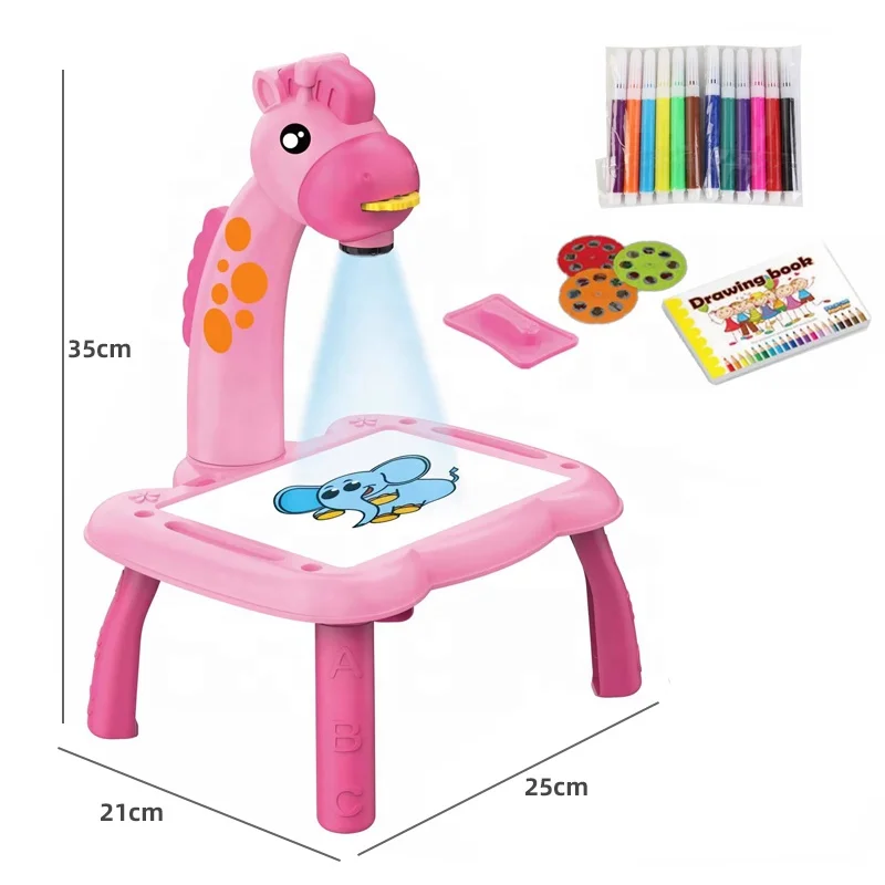 Masa de desen cu proiector este o jucărie educativă care îmbină distracția cu dezvoltarea creativității copiilor. Proiectează imagini colorate pe tablă, pe care cei mici le pot reproduce cu cariocile incluse. Perfectă pentru joacă individuală sau activități în familie.