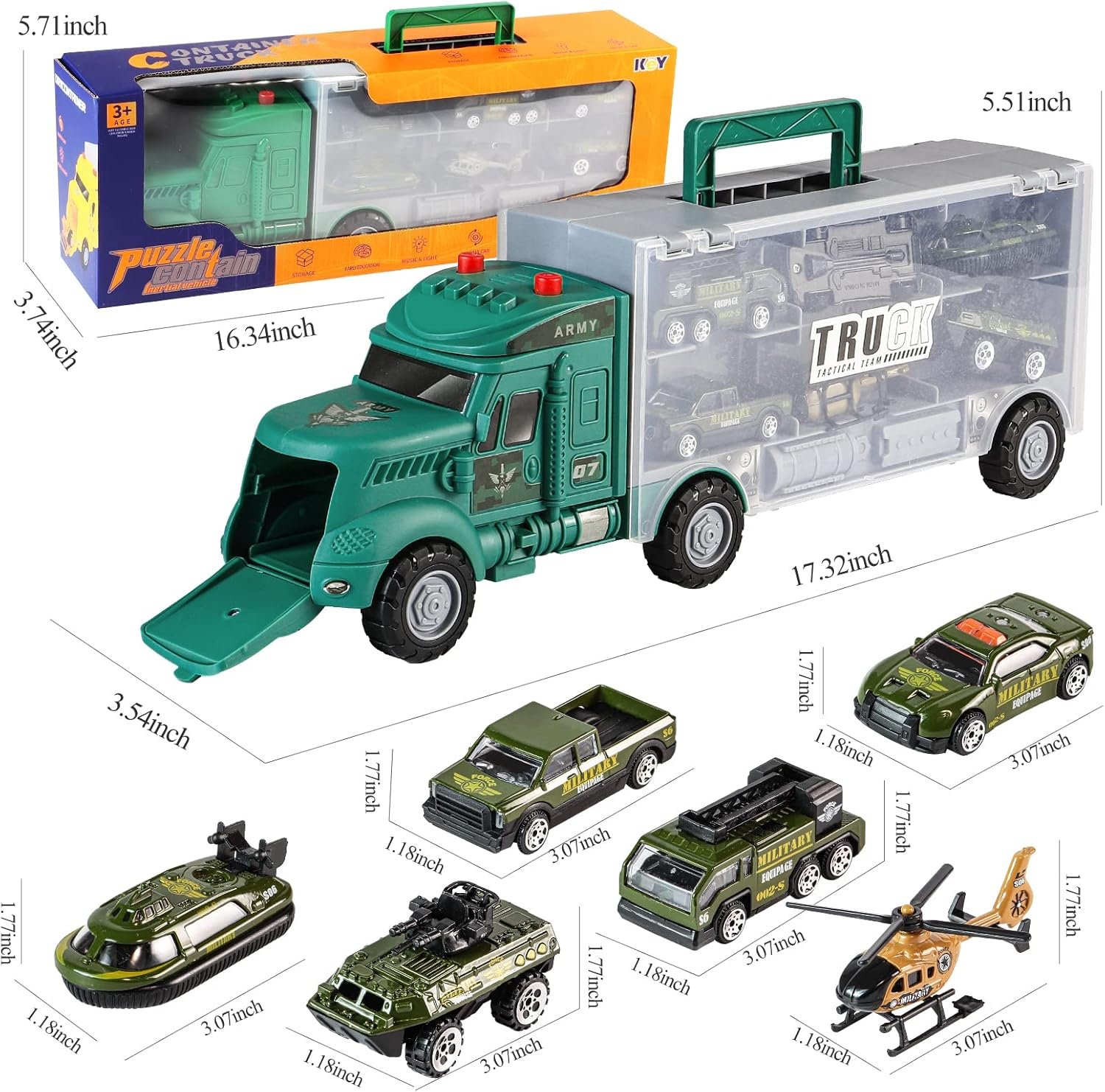 Acest set de jucării 17 în 1 cu camion militar oferă ore întregi de joacă interactivă și educativă pentru băieți între 8 și 12 ani. Combinația dintre camionul transportator, mini vehiculele militare și accesoriile incluse stimulează imaginația, coordonarea și gândirea logică.