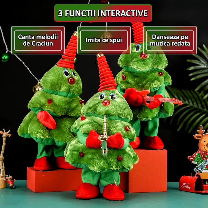 Bradul dansator interactiv este o jucărie de pluș cu impact vizual și auditiv puternic, foarte căutată de părinți și clienți în sezonul sărbătorilor. O investiție excelentă pentru revânzători care caută produse cu rulaj rapid și profit ridicat în perioada de Crăciun.