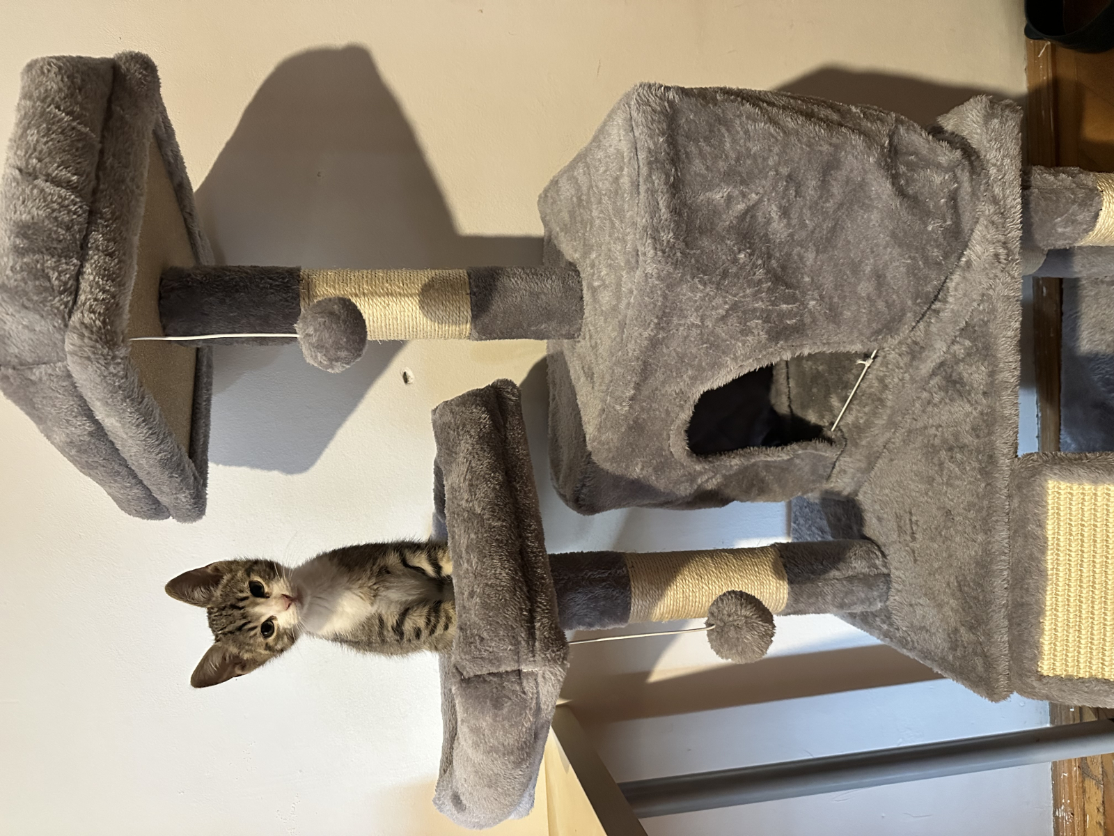 Acest ansamblu de joacă pentru pisici combină distracția cu relaxarea, fiind esențial pentru orice stăpân de feline. Multifuncțional și compact, oferă pisicilor zgâriere, cățărare, ascunzătoare și odihnă, în timp ce designul modern și materialele durabile îl fac ușor de integrat în orice locuință.